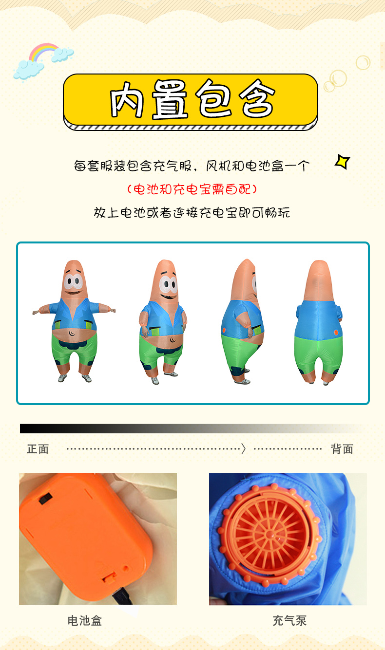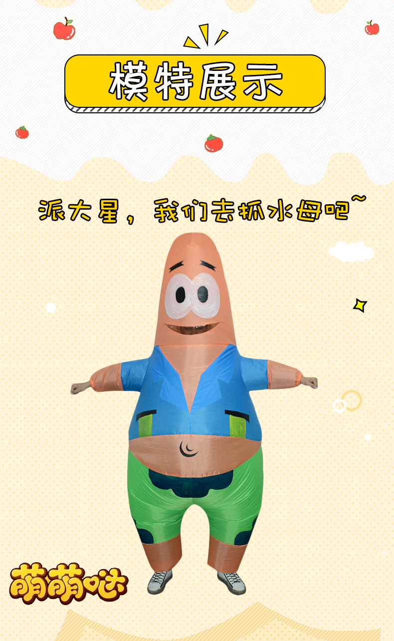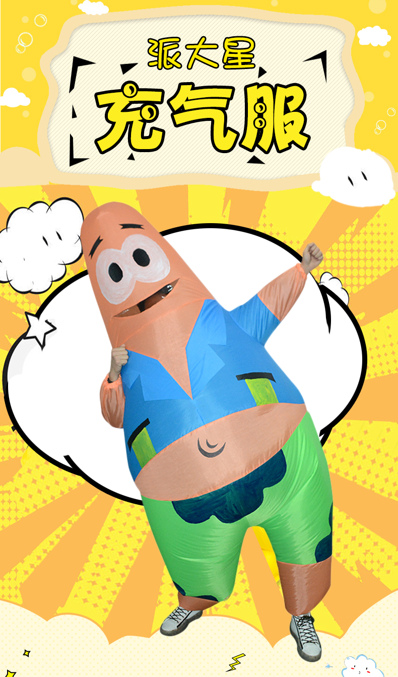 • أزياء هالوين نجمة كبيرة ملابس قابلة للنفخ للبالغين cos دمية سبونجبوب مضحك بدلة المشي ثلاثية الأبعاد